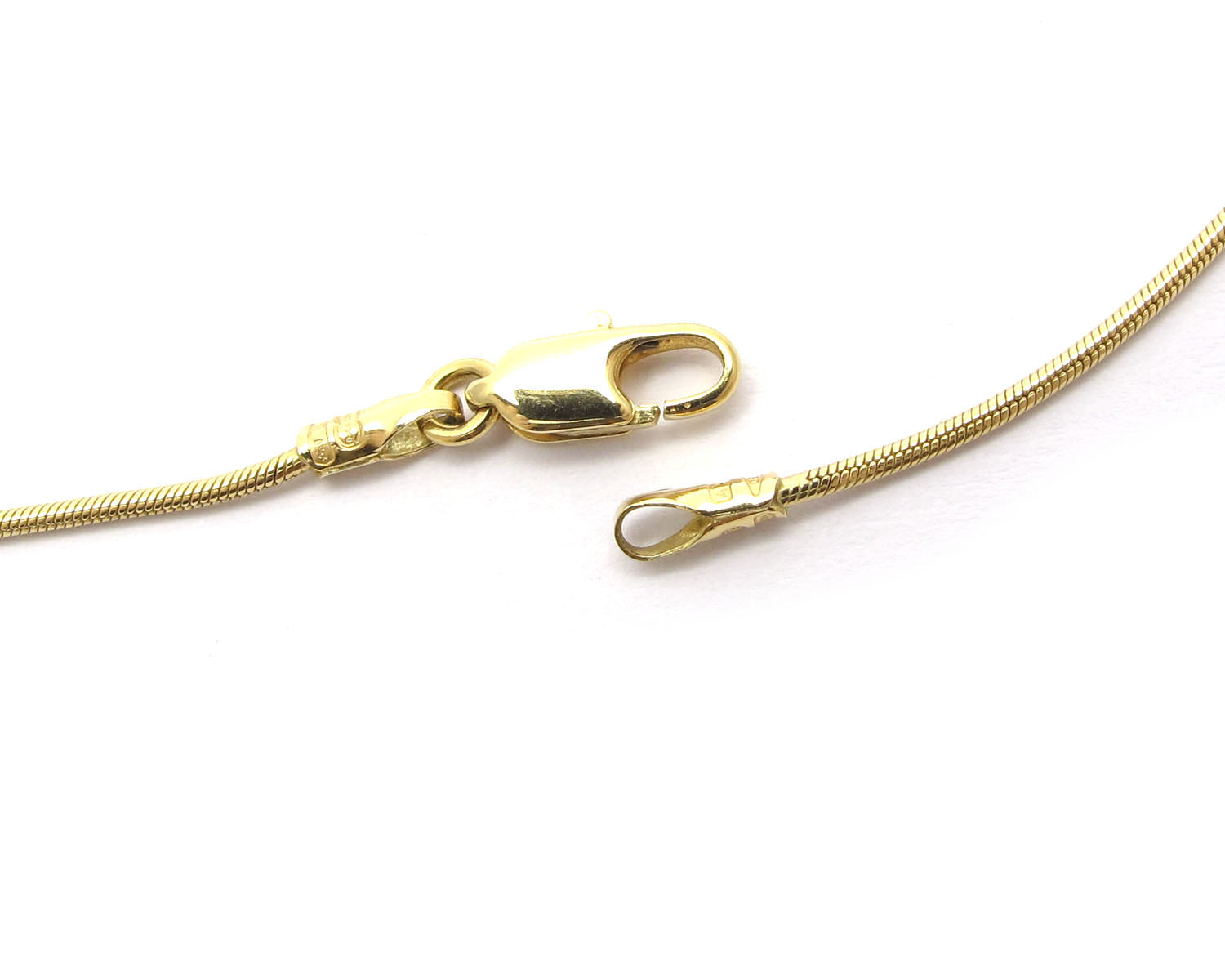 | Maße: | Kette Länge ca. 42,5 cm Stärke ca. 0,9 mm Anhänger max. ca. 5,3 x 9,8 mm |