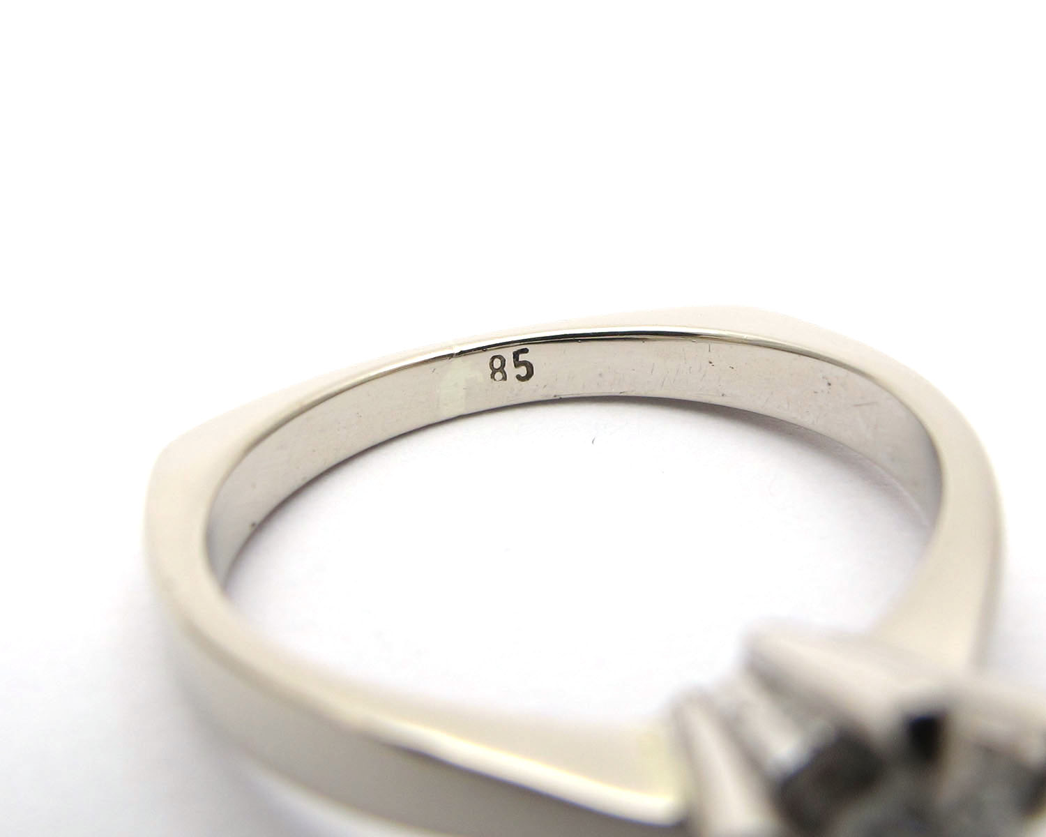| Maße: | Ringkopf max. 8,3 mm Ø (Brillant mit Fassung) Ringschienenbreite unten ca. 2,1 mm |