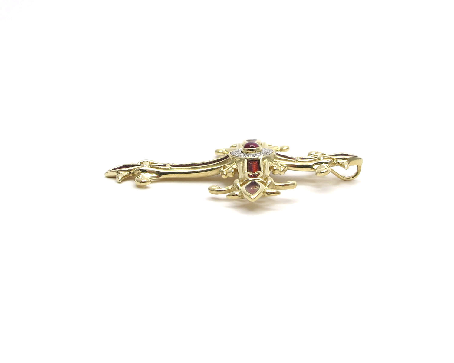 | Maße: | max. ca. 43,5 x 51,6 mm Rubin mit Fassung ca. 3,9 mm Ø Öse Innenmaß max. ca. 2,2 x 4,2 mm |