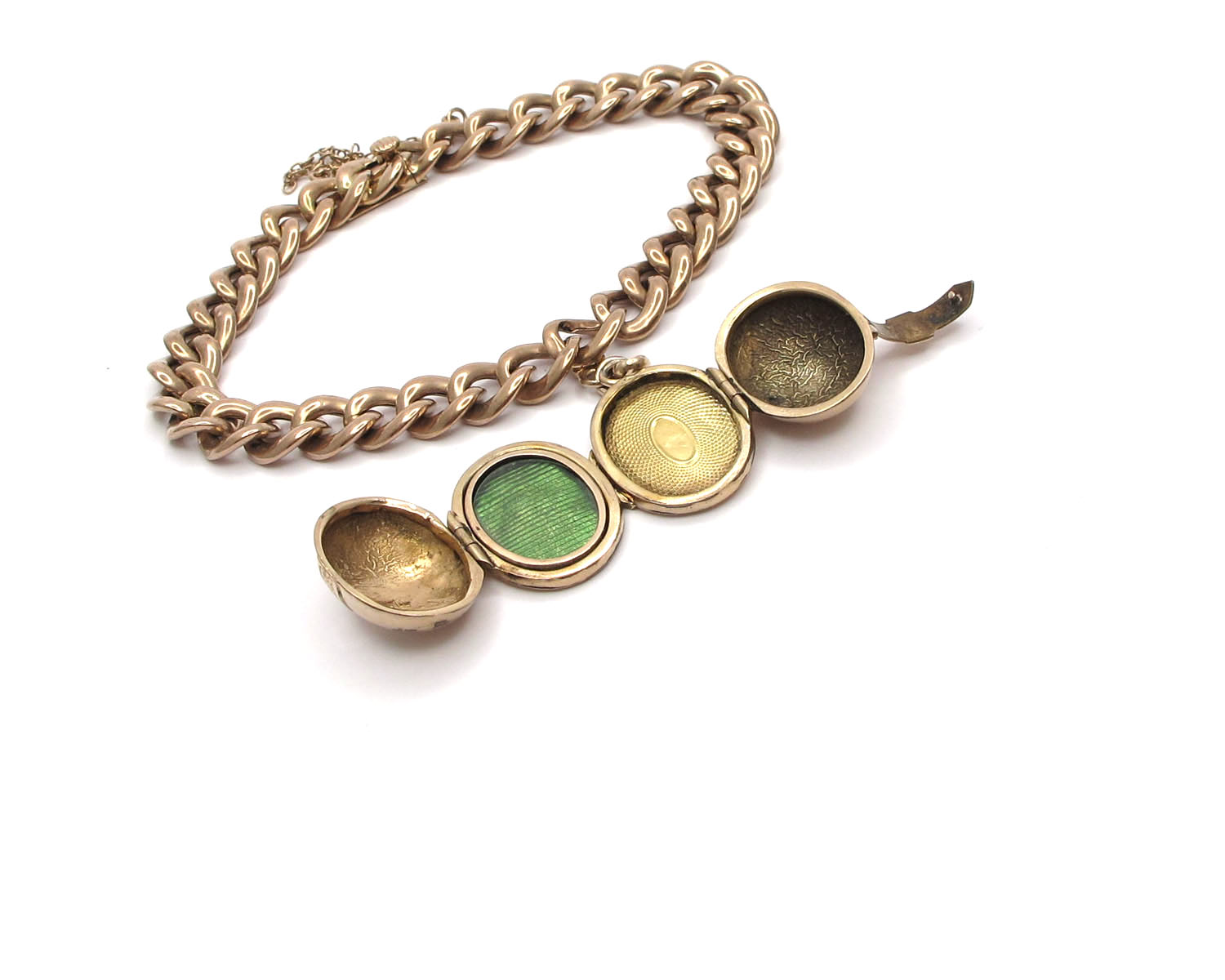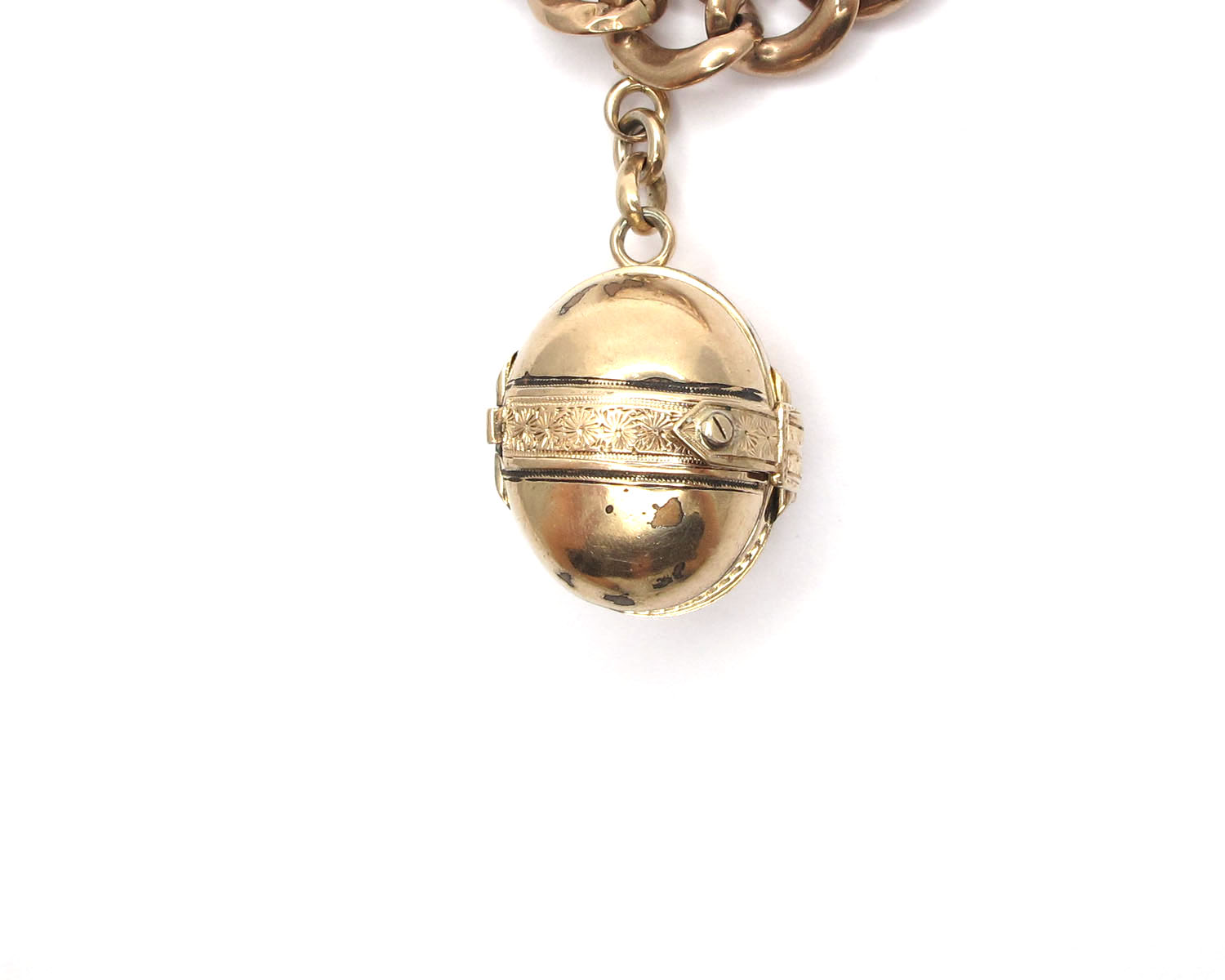 | Sonstiges: | Für ein Foto Ihrer Liebsten. Das zweite Klappschloss von dem Medaillon ist nicht mehr vorhanden, dehalb ist eine kleine offene Bohrung vorhanden. |